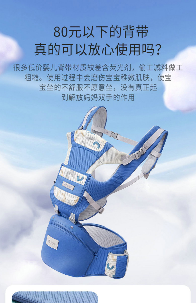 Aibedila Baby Strap Waist Stool Holding Baby God Multi functional Strap Waist Stool Four Seasons Dual Use Lightweight Baby Outdoor Carrying Baby 【 3D Breathable Gift Box Package 】 Ludlow Blue 【 Image Price Brand Quotation 】-
