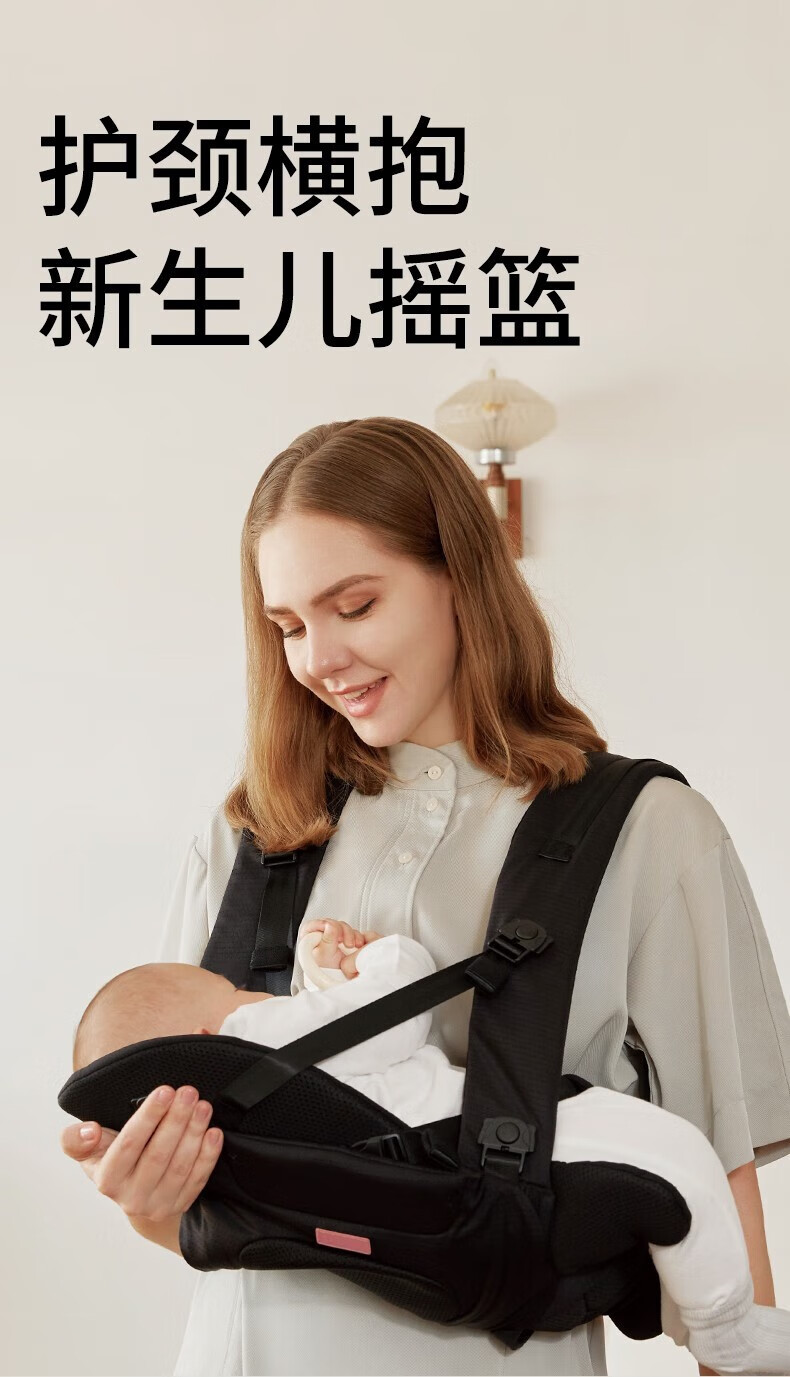 Bear hugging baby carrying strap with multifunctional front and rear horizontal embrace type outdoor baby hugging tool, lightweight, breathable, plain black in summer [breathable horizontal embrace style]