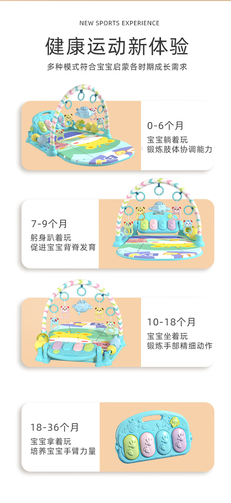 Fisher Price Baby Fitness Equipment Toy 0-1 Year Old Baby Play Gym Newborn Baby Gym Equipment Baby Boys and Girls Music [Cute Rabbit/Safety Edition] Charging+Remote [Image Price Brand Quotation]-