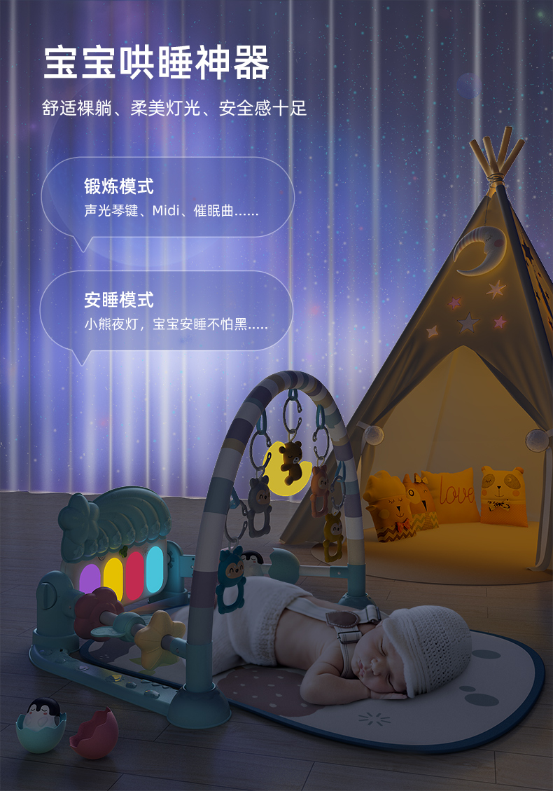 Nine Tailed Bear Play Gym Newborn Baby Toy 0-1 Year Old Baby Gym Early Childhood Education Yiqu Boys and Girls 3-6 Months Wj [safety+night light] Green Battery [image price brand quotation]-